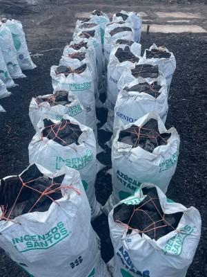El carbón vegetal va en costales de 25 a 35 kilos cada uno (dependiendo del tamaño de los costales)