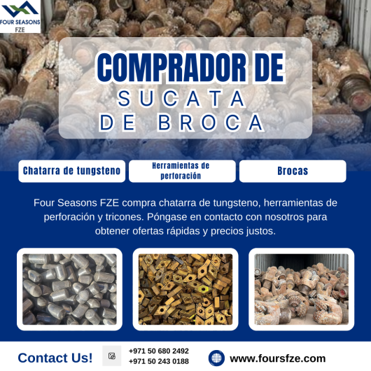 Four Seasons FZE es una empresa de gestión de residuos con visión de futuro, dirigida por el Sr. Anshul Goel, con una sólida reputación en materia de abastecimiento ético y prácticas sostenibles. Fundada en 2019, la empresa busca activamente comprar una amplia gama de materiales de desecho, incluyendo desechos de brocas, desechos de tricones, desechos de martillos DTH, desechos de brocas DTC, desechos de brocas PDC, sierras cortadoras, desechos de acero inoxidable, desechos de manganeso, desechos de cromo, desechos de níquel, desechos de molibdeno, residuos electrónicos y residuos de baterías. Con su compromiso con el reciclaje responsable y la gestión de residuos, Four Seasons FZE se asocia con proveedores de confianza en todo el mundo para garantizar un aprovisionamiento eficiente y fiable de materiales de desecho.